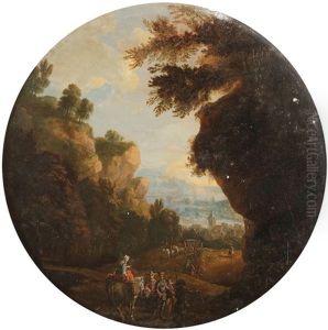 A Cavalry Battle In An Extensive Landscape (+ A Wounded Soldier Being Treated Beneath A Tree; Pair)