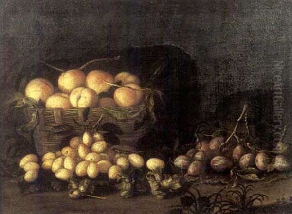 Nature Morte Au Panier De Peches, De Prunes Et De Noisettes