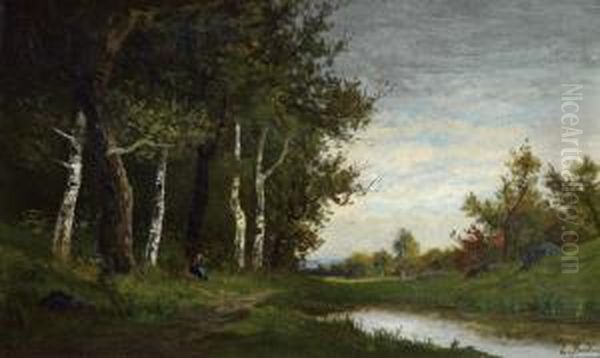 " Ruisseau Devant Une Clairiere A L'oree De La Foret ".