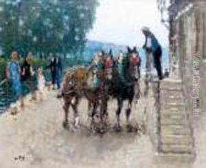 Personnages Et Charette Sous Un Arbre