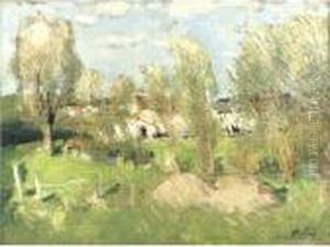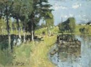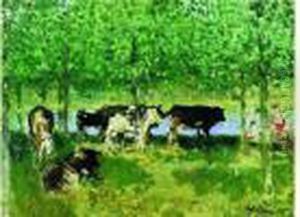 Vaches Et Fermiers Au Bord D'une Riviere.