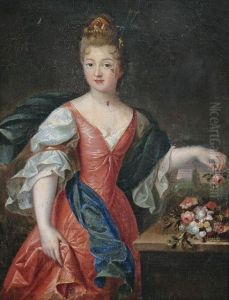 Portrait De Francoise Marie De Bourbon Dite Mademoiselle De Blois Tenant Un Bouquet De Fleurs
