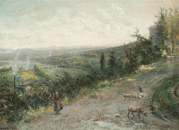 Bergere Et Son Troupeau Sur Les Hauteurs De Lyon
