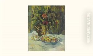 Nature Morte Aux Fruits Et Au Vase De Fleurs