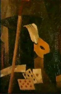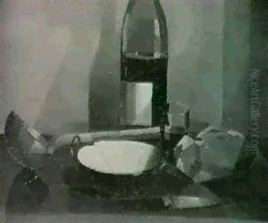 Nature Morte A La Bouteille, Pipe Et Journaux