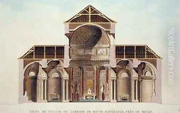 Cross Section of the Abbey Church of Bonne Esperance near Binche Belgium from Choix des Monuments Edifices et Maisons les plus remarquables du Royaume des Pays Bas
