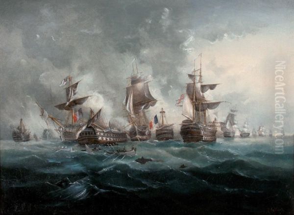 Scene De Bataille Navale Franco-anglaise Debut Xixe Siecle