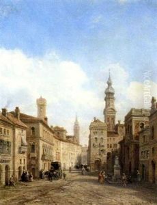 Ansicht Einer Franzosischen Stadt Mit Figurenstaffage