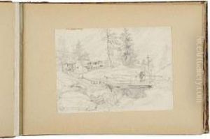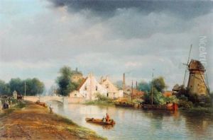 Houses Of Parliament From The Thames With Figures Boarding A Ferry In The Foreground