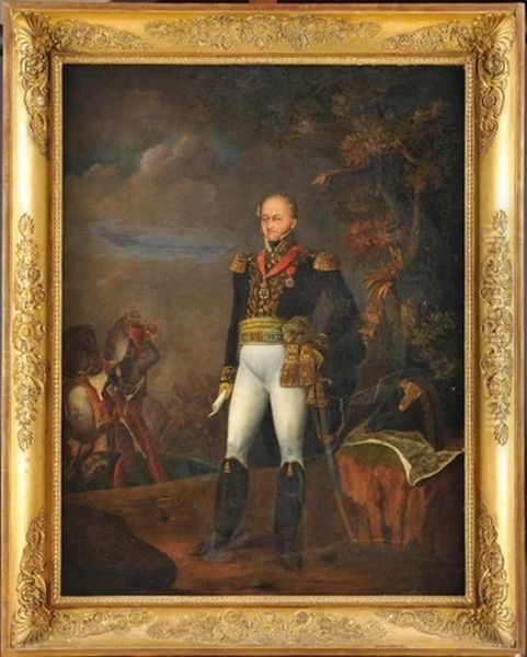 Portrait D'un General De Brigade De Cavalerie, En Pied, Portant Ses Decorations, La Croix De Saint Louis, Et L'etoile De La Legion D'honneur En Sautoir