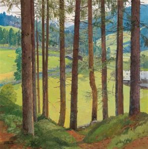 The Artist Painting His Family In A Wooded Landscape