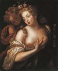 A Portrait Of A Lady As Venus, Seated Three-quarter Length, Together With Cupid