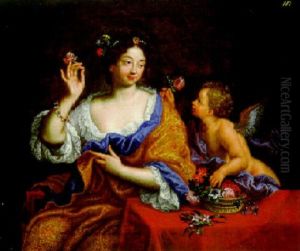 Portrait De Femme (mademoiselle De Fontanges?) Et Cupidon