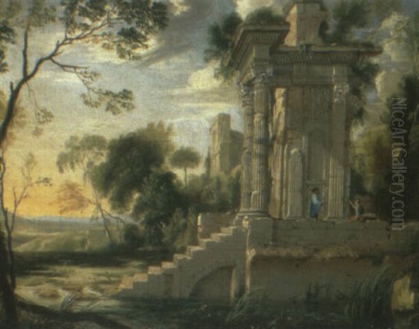 Landscape With Peasants Conversing By Classical Ruins