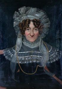 A Portriat Of J. Berville Wearing Black Lace Trimmed Shawl, And A Green Dress With White Lace Underslip