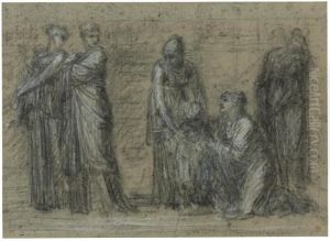 Josephet La Femme De Putiphar, Encre Noire, Lavis Brun Et Rehauts Degouache Blanche Sur Papier. Attribue A Pierre Paul Prud'hon. Ecolefrancaise. Dim.: 23x20,5 Cm.