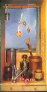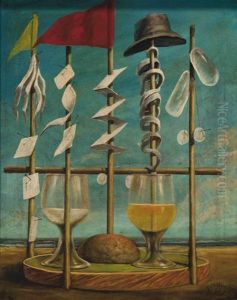Composition Surrealiste, Avec Phare Et Poissons Suspendus