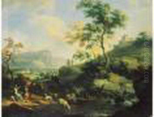 Paysage Aux Bergeres Et Au Troupeau.
