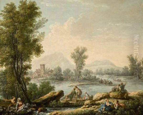 Scenes Galantes Et Pecheurs Dans Un Paysage