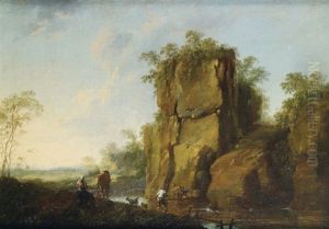 A Wooded River Landscape With A Farmstead And Figures Resting On A Track; A River Landscape With Figures...