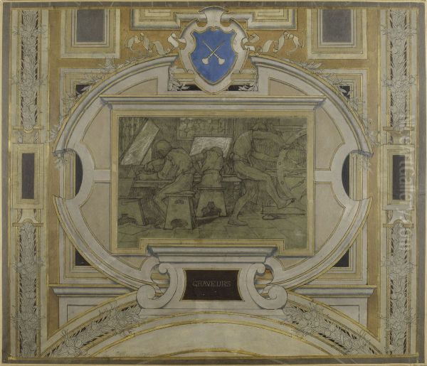 Esquisse pour la galerie des Metiers de l'Hotel de Ville : Graveurs