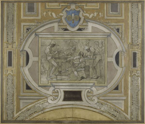 Esquisse pour la galerie des Metiers de l'Hotel de Ville : Tourneurs