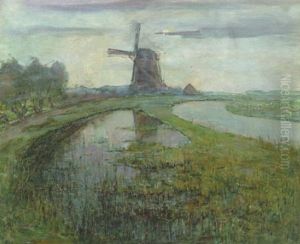 Truncated view of the Broekzijder mill on the Gein, wings facing west