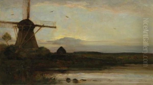 Oostzijdse Mill With Extended Light Blue, Yellow And Violet Sky