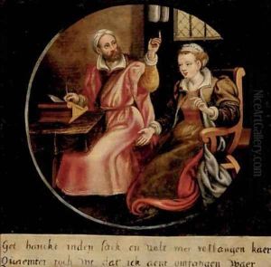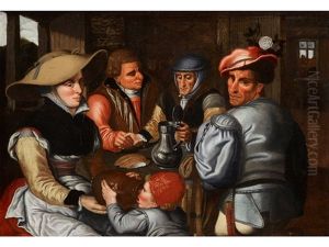 A Kitchen Interior, With A Couple At A Laid Table, A Servant Couple By The Fire Beside Them