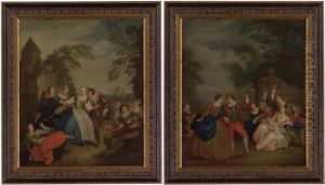 Landliches Fest Mit Tanzenden Bauern Und Einem Eleganten Paar Mit Einem Ruhenden Kavalier Als Zuschauer