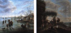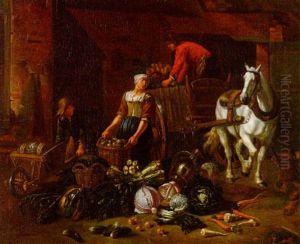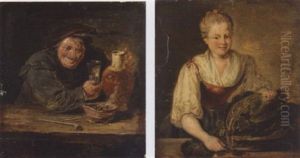 A Peasant Woman Preparing Fish In A Cottage With A Peasant Man At A Door