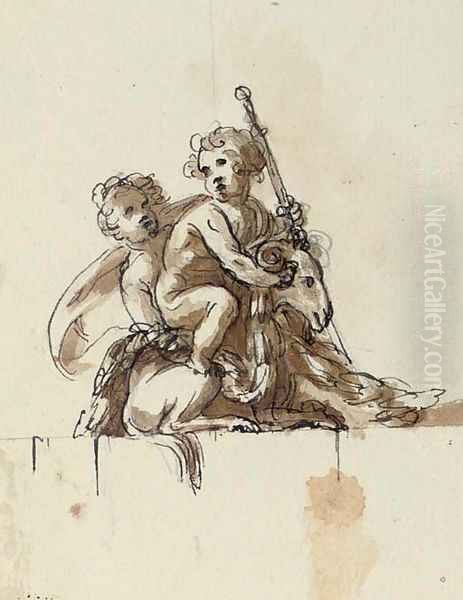Two putti with a goat