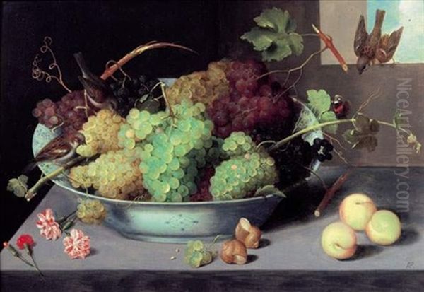 Grappes De Raisin Dans Un Plat En Porcelaine Wan-li Et Trois Moineaux