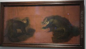 A Spaniel Attacking A Vixen And Dog Fox In An Open Landscape