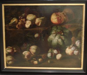Elaborate Still Life With Fruits, Vegetables, A Salver And A Swan Before A Draped Pedestal, A Landscape Beyond