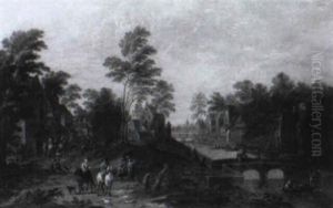 An Italianate Landscape With Travellers On A Track, A Town Beyond