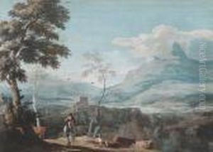 Eine Italianisierende Landschaft Mit Einem Reiter Und Anderen Reisenden
