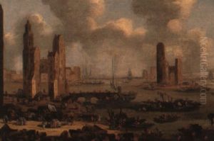 A Capriccio Harbour With Numerous Figures
