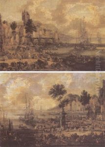 Waterfowl In A River Landscape And A Fox And Poultry In A Landscape (59 X 89cm.) (2)