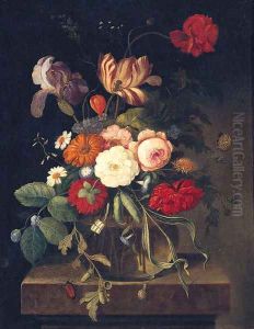 Still Life Of Flowers In A Vase Set In A Landscape
