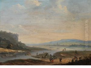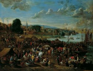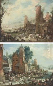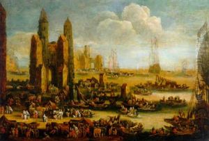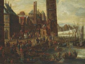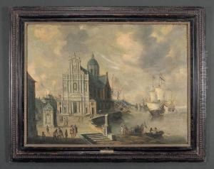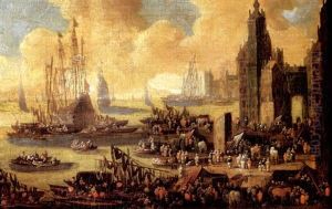 Port Scene With Figures Oil Painting by Pieter Casteels the Younger