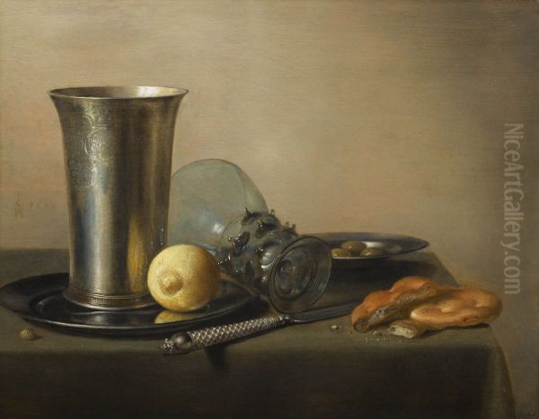 Bring the timeless beauty of Pieter Claesz's Still life with a silver chalice, lemon, bread, and berkemeyer into your home with a handmade oil painting reproduction. Carefully recreated on canvas by skilled artists using traditional techniques, this piece captures the delicate brushwork, subtle light, and vibrant color of the original masterpiece. With museum-level quality and rich texture, it brings elegance and artistic depth to any space. Enjoy free shipping and make this masterpiece a part of your personal collection.