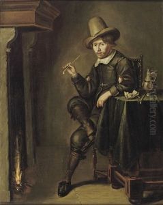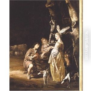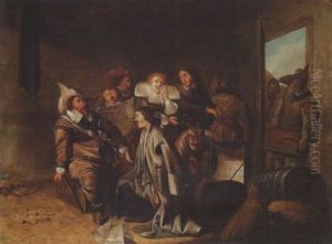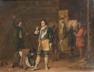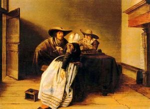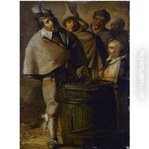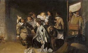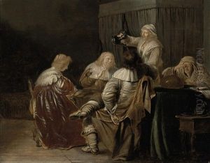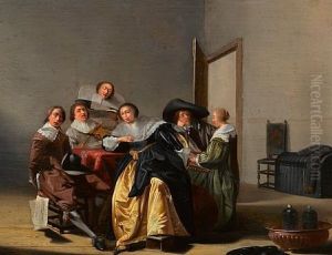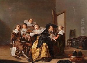 A Brothel Scene With Elegant Figures At A Table, A Maid Pouring Drinks And An Elderly Lady Counting Money