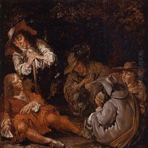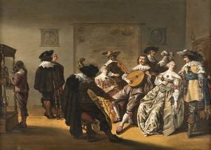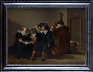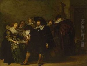 An Interior With A Lady Playing A Lute And Elegant Figures Singing Around A Table