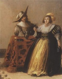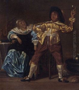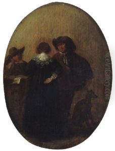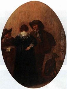 A Cortegaardje: An Interior With A Couple Conversing, The Lady Seated, The Soldier Standing By A Table