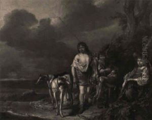 A Dune Landscape With A Young Girl Seated And Two Young Boys Returning From A Hunt Accompanied By Their Hounds