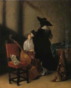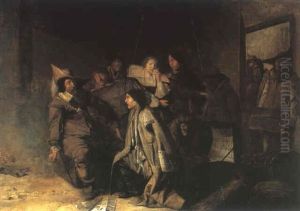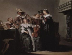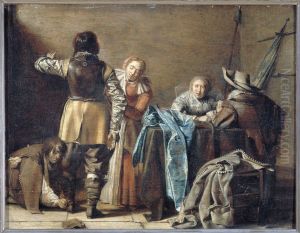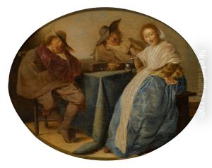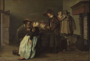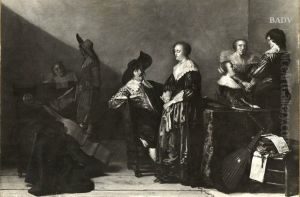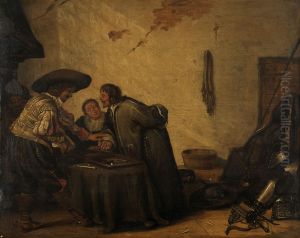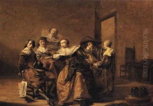 Interior With Militiamen Playing Tric-trac With Two Elegant Women