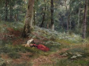 A Young Man Sleeping In An Italianate Landscape, His Horse Standingnearby