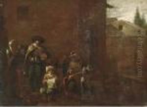 The Sense Of Hearing: Peasants Music-making In A Barn, A Pile Of Kitchen Utensils In The Foreground