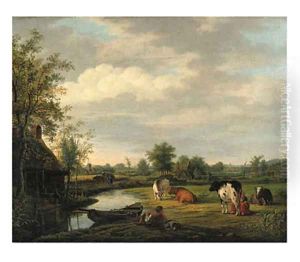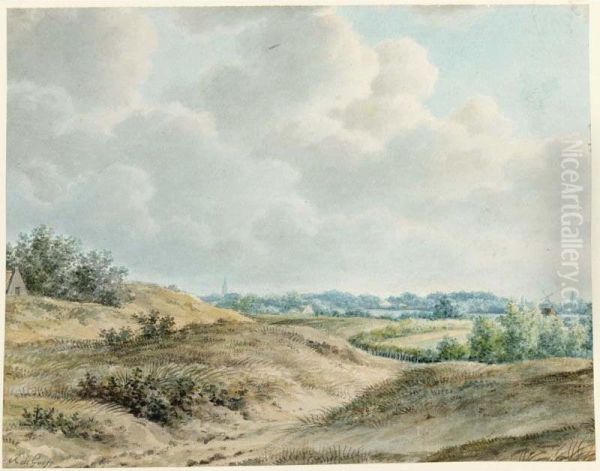 A Dune Landscape With A Church-tower And A Mill In The Background